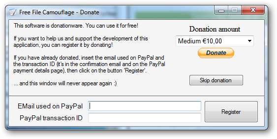Lahjoitusnäyttö tulee näkyviin, napsauta ohita lahjoitus -painiketta käynnistääksesi sovelluksen.