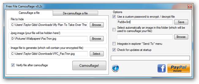 Onko sinulla salaisia suunnitelmia valloittaa maailma, jota et halua kenenkään pystyvän lukemaan? Salaa nämä arvokkaat tavut muokatulla salasanalla, ennen kuin naamioit ne tavalliseksi kuvaksi, joka voi huijata ketään.