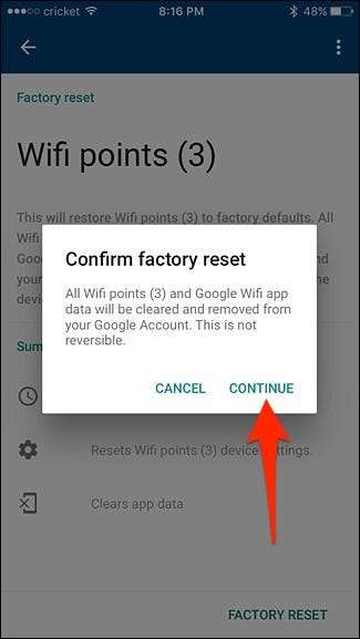 Muista tietysti, että tehdasasetusten palauttaminen Google WiFi poistaa Wi-Fi-verkon, etkä voi muodostaa yhteyttä siihen, joten varmista, että olet valmis luomaan uuden verkon heti sen jälkeen.