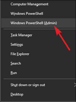 komento on melko suoraviivainen. Avaa PowerShell järjestelmänvalvojan oikeuksilla napsauttamalla Windows + X -näppäimistöä ja valitsemalla sitten Power Power -valikosta ”PowerShell (Admin)”.