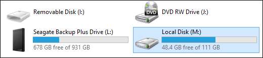 Kun käynnistät asiakirjan tai sovittimen ja asema pyörii, sen pitäisi näkyä automaattisesti Windowsissa irrotettavana asemana samalla tavalla kuin upouusi hyllyltä saatavana oleva ulkoinen kiintolevy - ohjelmistoja tai ohjaimia ei tarvita. Alla näet aseman (M-asemamme), joka on todettu oikean reunan varrella todellisen ulkoisen aseman (L-asema).