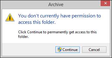 Tämä tarkoittaa vain sitä, että kansiolla tai tiedostolla oli edellisen käyttöjärjestelmän myöntämät oikeudet. Voit mennä eteenpäin ja napsauttaa Jatka, jotta Windows antaa käyttöoikeudet tilille, jolla olet kirjautuneena sisään.