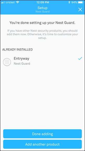 Kun kaikki on määritetty ja lisätty Nest Secure -järjestelmään, napauta alareunassa Valmis lisääminen.