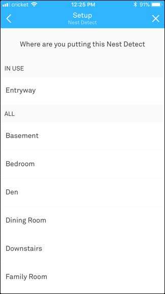 Valitse seuraavalla näytöllä paikka, johon Nest Guard sijoitetaan kotiisi.