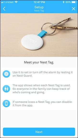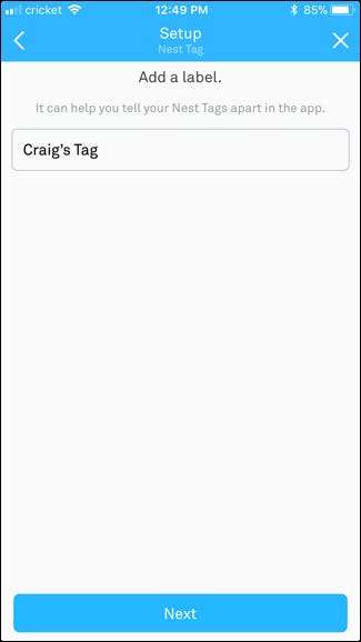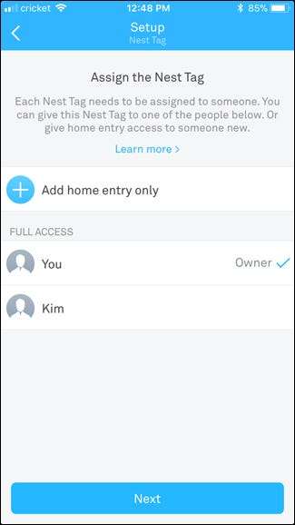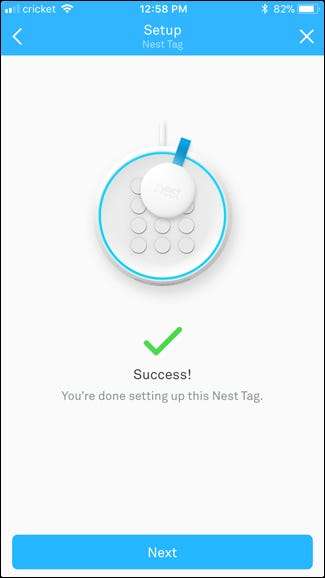 Napauta uudelleen Seuraava, kun tagi on yhdistetty Nest-tiliisi.