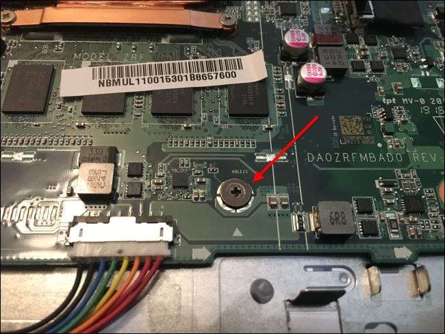 Oli myös muita lahjoja. Kirjoitussuojaruuvin tulisi näyttää näkyvästi erilaiselta kuin emolevyn muut ruuvit. Tämä tietty ruuvi näkyy tummanharmaana Chromebookissamme, kun taas muut emolevyn ruuvit ovat kirkkaampia hopeaa. Ruuvin alla on kirkas hopea, kun taas muissa emolevyn ruuveissa on pronssinen väri.
