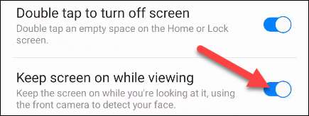 Samsung kutsuu ominaisuus "Smart Stay" - vaikka se ei todellakaan käytä tätä nimeä asetuksissa. Se käyttää etukameraa havaitsemaan, milloin joku tarkastelee näyttöä.