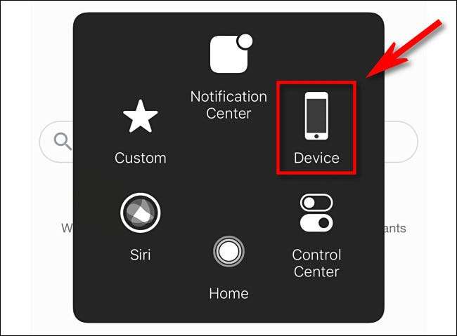 Laittaa iPhonen tai iPadin nukkumaan ilman virtakytkintä napauttamalla AssistiveTouch painiketta kerran. Valikossa, joka tulee näkyviin, kosketa ”Device”.