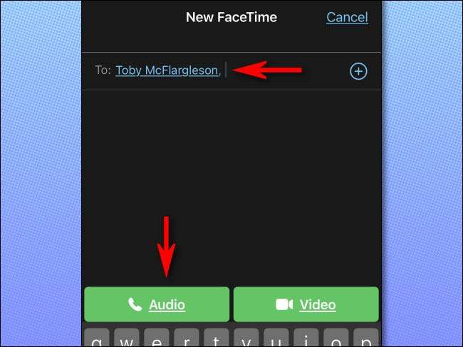 Syötä "TO:" -kenttään nimi tai numero, jonka yrität soittaa. Napauta sitten "Ääni".