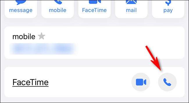 Jos yhteystieto tukee FaceTime-puheluja, näet "FaceTime" -merkin sen puhelinnumeron alapuolelle. Napauta Blue Puhelinkuvaketta "FaceTime" -osiossa, jotta FaceNime-ääni soittaa.