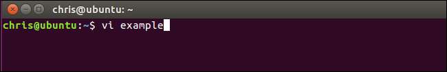 Käynnistä ensin vim. Esimerkiksi seuraava komento käynnistää vim: n ja osoittaa sen tiedostoon nimeltä "esimerkki" nykyisessä hakemistossa. Jos kyseistä tiedostoa ei ole, vim luo nykyisen hakemiston tiedoston nimeltä "esimerkki", kun tallennat sen: