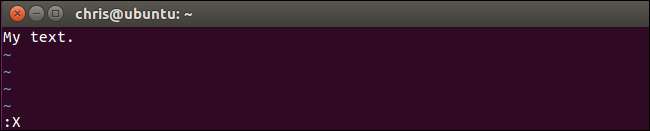 Salasana liitetään nykyiseen Vim-tiedostoon, mutta sinun on tallennettava muutokset ennen kuin salasana määritetään tiedostolle. Voit tehdä tämän painamalla Esc-näppäintä varmistaaksesi, että olet komentotilassa, ja kirjoita sitten
