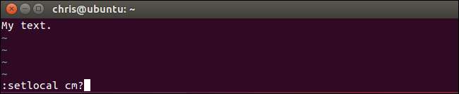 Jos haluat tarkistaa, mitä salaustapaa tiedosto käyttää, avaa tiedosto vimissä, paina Esc-näppäintä varmistaaksesi, että olet komentotilassa, kirjoita seuraava komento ja paina Enter.