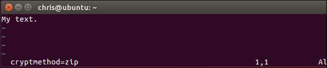 Kun seuraavan kerran avaat tiedoston uudelleen Vimissä, se ei valittaa heikosta salausalgoritmista. Näet myös valitsemasi salausalgoritmin vim-näytön alareunassa, kun avaat tiedoston.