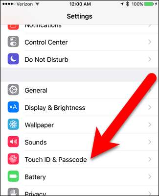 Napauta Asetukset-näytössä “Touch ID & Passcode”.
