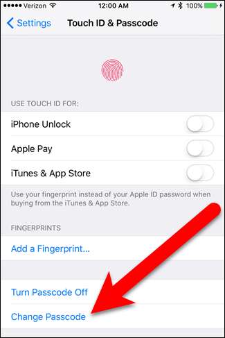 Kosketa Touch ID & Passcode -näytössä “Change Passcode”.
