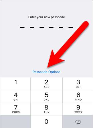 Napauta nyt uuden salasanan sijaan "Passcode Options".