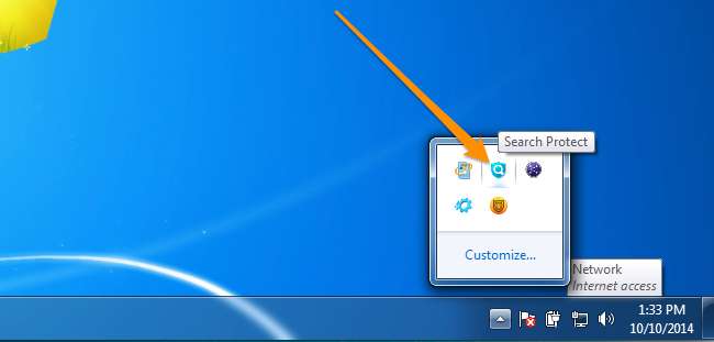 Tämä on todella surullista sanoa, mutta on todella tärkeää käyttää Search Protect -paneelia sammuttamaan huonot asetukset ennen sen poistamista. Löydät Search Protect -kuvakkeen tehtäväpalkista ja kaksoisnapsauttamalla sitä paneelin avaamiseksi.