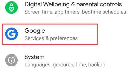 Selaa alaspäin ja valitse "Google" -asetukset.