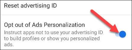 Et voi poistaa tai poistaa käytöstä mainostunnusta kokonaan. Parasta, mitä voit tehdä, on "palauttaa" tunnus. Tämä pyyhkii liuskekivi puhtaana, ja jos teet sen säännöllisesti, et rakenna suurta tietoa. Voit myös poistaa henkilökohtaiset mainokset.