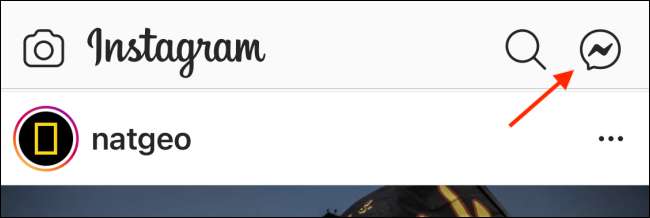 Aloittaminen avata älypuhelimesi "Instagram" -sovellus ja napauta sitten "Messenger" -kuvake Instagram-aloitusnäytön oikeassa yläkulmassa.