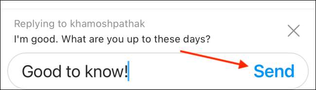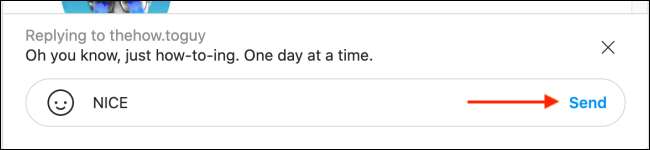 Kun olet päivittänyt uuteen ristipäällysteeseen, kyky vastata tiettyyn viestiin on myös saatavilla Instagram webissä .