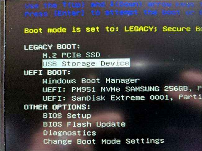 Seuraavaksi haluat käynnistää tietokoneesi kyseiseltä USB-asemalta. Voit joutua muuttamaan joitain BIOS-asetuksia tehdäksesi tämän, tai tietokoneesi saattaa sallia sen pakkauksesta. Sinä pystyt lue lisätietoja tästä oppaasta .