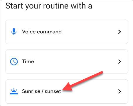 On olemassa useita tapoja tehdä Google Assistant rutiinia. Voit käyttää ääntäsi lausumaan komennon , valita tietyn ajan Tai käytä dynaamista auringonnousun ja auringonlaskun. Jälkimmäinen on erityisen kätevä automatisoida valot, mutta sitä voidaan käyttää moniin muihin toimiin.