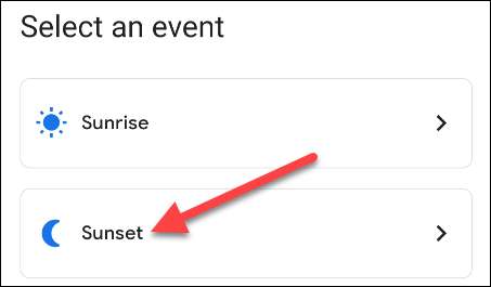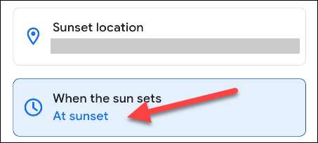 Seuraavaksi voit päättää, miten tarkalleen käyttää Auringon nousu / lasku aikaa. Valitse ”Kun aurinko laskee / nousee.”