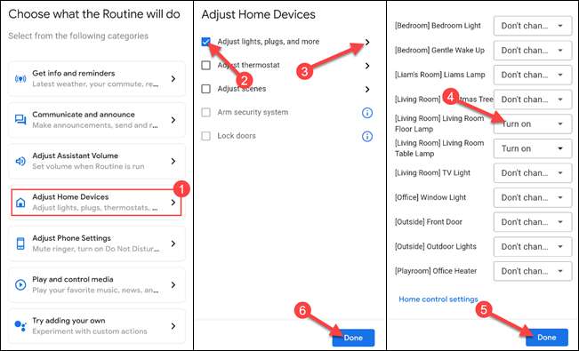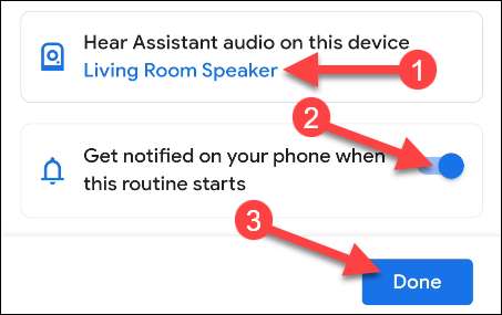 Lopuksi voit valita laitteen, jos rutiini kuuluu audioelementin, ja saat ilmoituksen, kun rutiini alkaa. Kosketa ”Valmis”, kun olet tyytyväinen kaikkiin valintoja.