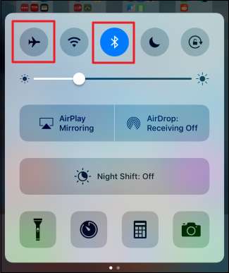 - Varmista, että Bluetooth on kytketty päälle ja lentokonetila pois päältä iOS-laitteellasi. Voit tarkistaa tämän nopeasti liu'uttamalla Control Center -paneelia ylös näytön alareunasta ja tarkistamalla yläreunan painikkeet.