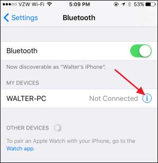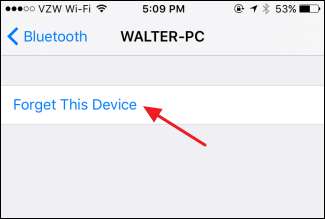 Pyydä iOS: tä unohtamaan laite ja muodostamaan sitten pariliitos uudelleen