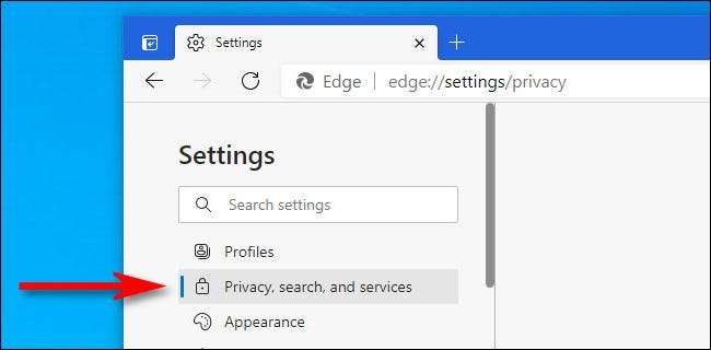 Valitse Asetukset-välilehdellä "Tietosuoja, haku ja palvelut" sivupalkissa.