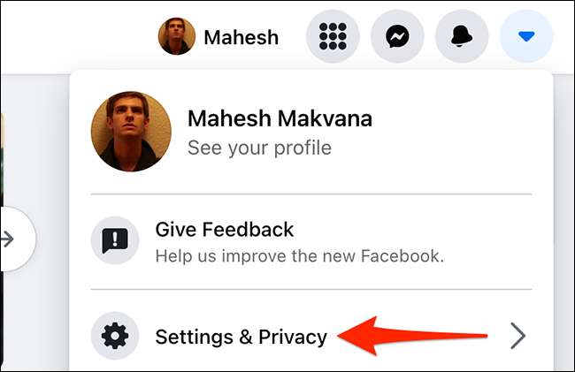 Aloita käynnistämällä Facebook selaimessa tietokoneessa. Sivuilta, että oikeassa yläkulmassa, klikkaa alaspäin nuolikuvakkeen (joka on viimeinen kuvake siinä rivissä).