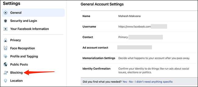 Facebook vie ”Yleiset asetukset” sivulla. Tässä sivupalkista vasemmalla, klikkaa ”esto”.