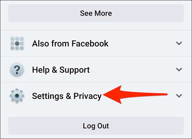 On ”Menu” avautuvassa näytössä selaa kaikki pohjaan. Sitten kosketa ”Asetukset & amp; Yksityisyys. "