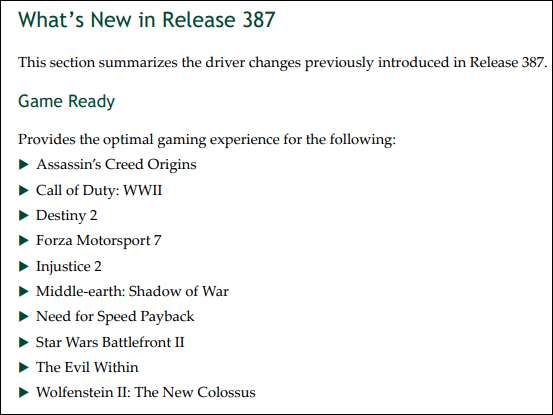 Tässä on pieni osa NVIDIA: n viimeisimmän näytönohjainpaketin (julkaisu 387) muutoksista, jotka julkaistiin 20. joulukuuta 2017: