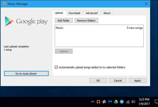 Google Play -musiikinhallintatyökalu on erityisen kätevä, koska se toimii tietokoneen taustalla ja seuraa musiikkikansiota. Kun lisäät musiikkia musiikkikansioon - lataamalla, kopioimalla tai ostamalla -, Google Play Musiikinhallinta lähettää sen automaattisesti Google Play Musiikki -tilillesi. Se on saatavilla Google Play Musiikki -sovelluksessa ja verkkosivustolla kaikilla laitteillasi.