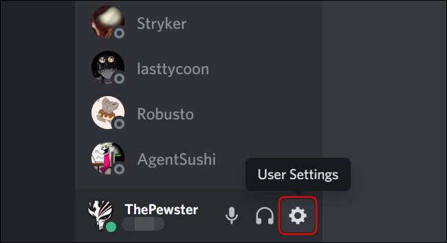 Fire Up Discord -sovellus ja klikkaa vaihteistokuvaketta vasemmassa alakulmassa vieressä Discord Käyttäjätunnuksesi.
