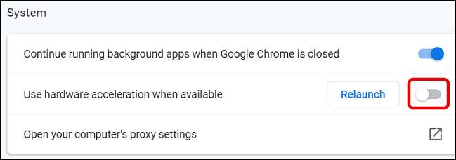 Siirry järjestelmän osioon ja siirry pois päältä "Käytä laitteiston kiihdytystä, kun käytettävissä" Asetus. Käynnistä selain uudelleen napsauttamalla "RELAAPH".