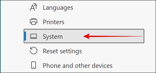 Valitse seuraava, valitse "Järjestelmä" vasemmanpuoleisesta navigointipaneelista.