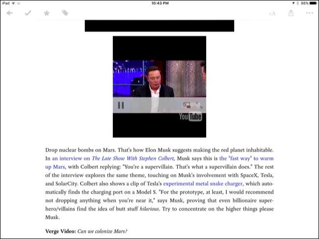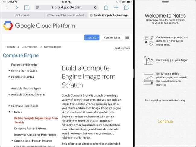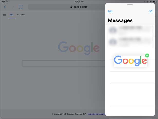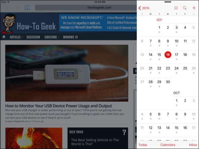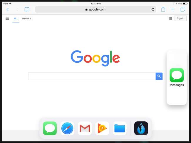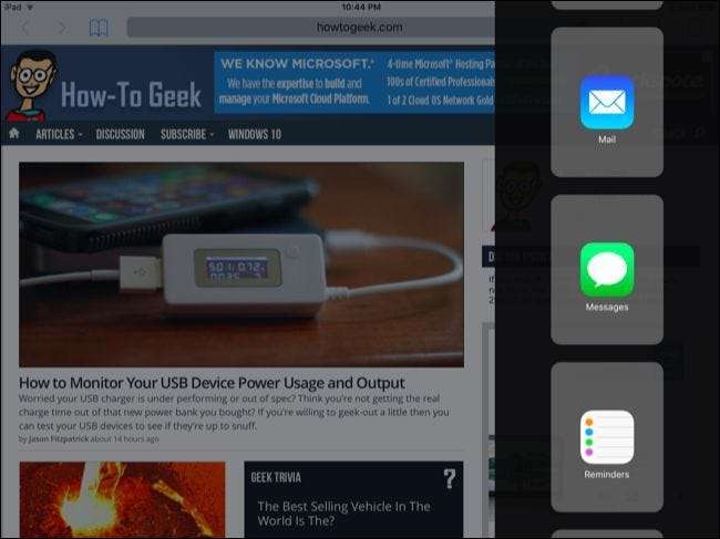 Napauta sovellusta luettelossa ladataksesi sen sivupaneeliin - se näyttää vähän kuin iPhone-sovelluksen käyttäminen iPadin näytön reunassa. Voit sitten vaihtaa liukuvien sovellusten välillä pyyhkäisemällä alaspäin sovelluksen yläosasta sivupalkissa.