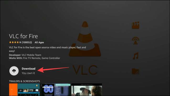 On ”VLC Fire” app sivun, valitse ”Lataa” alkaa ladata sovellusta.