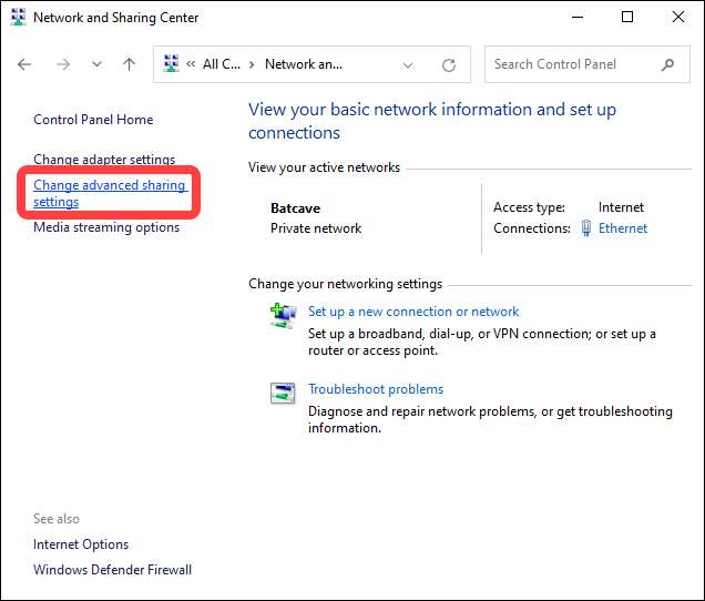 Kun olet valmis, voit sulkea Verkko- ja jakamiskeskus ikkuna.