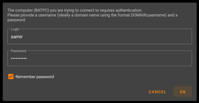 Avaa tietokoneen nimi kortti ja kirjaudu tietokoneen käyttäjätunnuksella ja salasanalla, jotta VLC käyttää jaettuja kansioita.