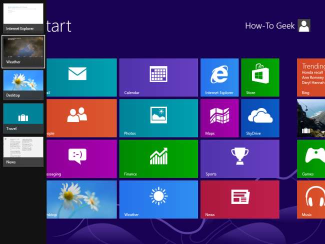 Voit myös käyttää ohjauslevyä siirtämään kohdistinta ja hallita Windows 8: ta hiirellä . Eleet kuitenkin lähestyvät kosketusta paremmin - pyyhkäisy oikealta tuntuu luonnollisemmalta kuin kohdistimen siirtäminen näytön oikeaan ylä- tai alakulmaan.