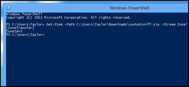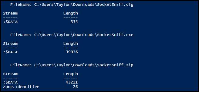 Get-Item -Path C: \ Users \ Taylor \ Downloads \ socketsniff.zip -Stream Zone * | Get-sisältö