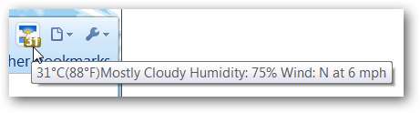 Voit saada lisätietoja "Työkalupalkin painikkeesta" kahdella tavalla. Ensimmäinen on viedä hiiri sen päälle nähdäksesi "Nykyiset sääolosuhteet" ...