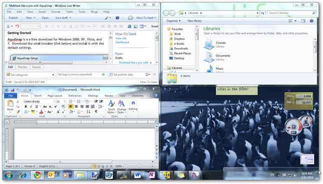 AquaSnap on loistava ilmainen apuohjelma, jonka avulla voit käyttää useita ikkunoita samanaikaisesti helposti ja tehokkaasti. Yksi Windows 7: n suurimmista uusista ominaisuuksista on Aero Snap, jonka avulla voit helposti tarkastella ikkunoita vierekkäin vetämällä ikkunoita ruudun puolelle. Kun Windows 7 on ollut käytössä viime vuonna, Aero Snap on yksi niistä ominaisuuksista, joita todella kaipaamme käytettäessä vanhempia Windows-versioita.