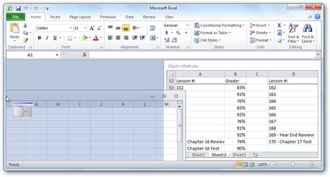 Voit jopa napsauttaa sisäisiä ikkunoita Multiple Document Interface (MDI) -ohjelmissa, kuten Excelissä. Napsautamme tässä työkirjaa Excelissä vasemmalle, jotta voimme tarkastella kahta työkirjaa vierekkäin.